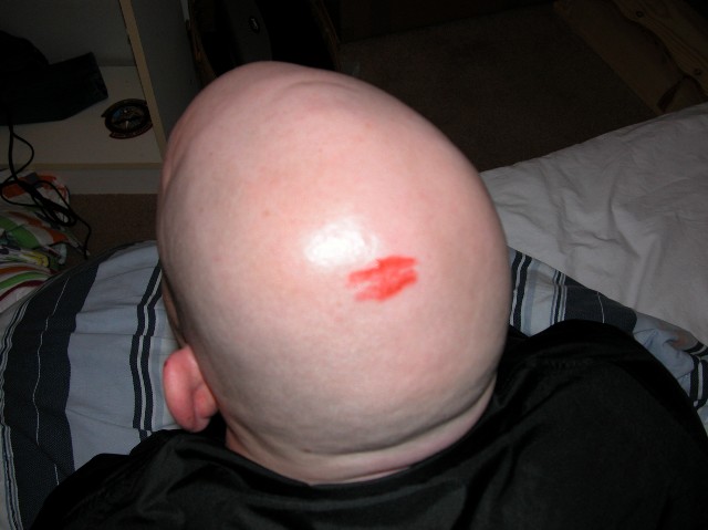 Well, at least she found a good use for it! To let her daddy know just how much she loves him by kissing his bald head! |
