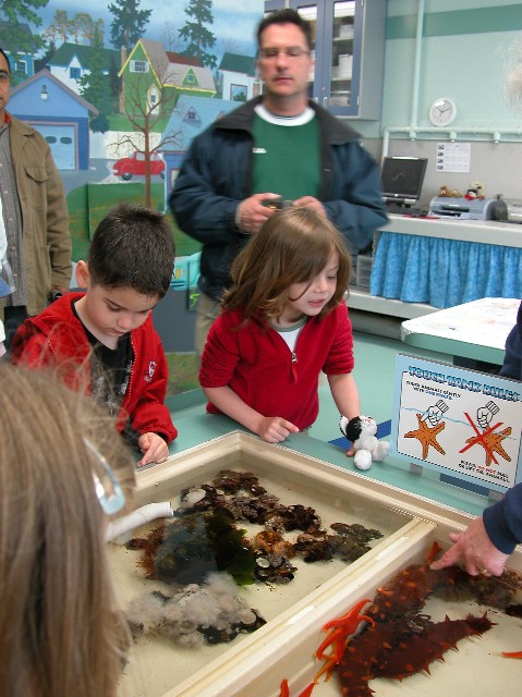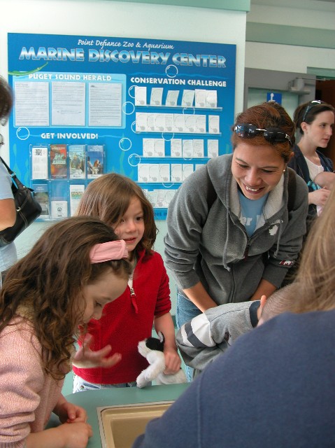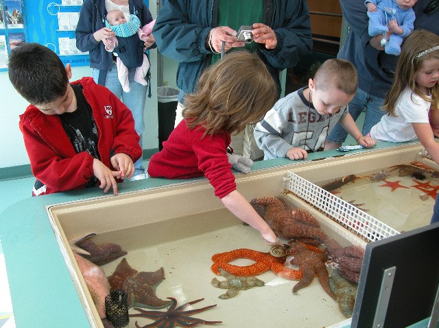 ![]() The children got to touch different types of sea creatures (anenomes, crabs, star fish, sea cucumbers). It took Caeli a bit to get brave enough to touch anything, but when she finally did, she didn't want to stop! The children were all very gentle and didn't try to pick them up. It was a fun experience for all the kids. |